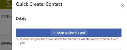 Did you know that the Business Card Scanner now requires that the user have access to the msdyn_AIModel and msdyn_AITemplate tables??
