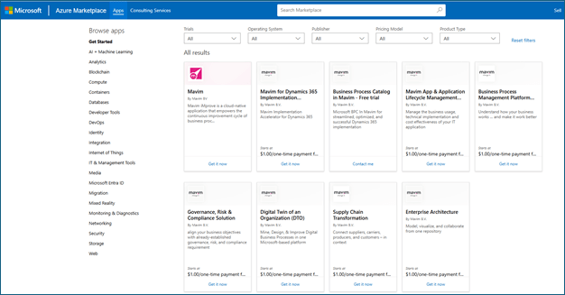 Mavim is one of several business process management (BPM) platforms you can find in the Azure Marketplace Apps. Mavim acts as a centralized process repository. It is well integrated with the Microsoft ecosystem, using Visio for diagrams and Word for descriptions. Within the tool, you can create your own metadata fields and create relationships between the processes. It allows for multi-stakeholder collaboration and has version control. In addition, Mavim has some analytical capabilities that allow for identification of bottlenecks, redundancies, and opportunities for optimization.