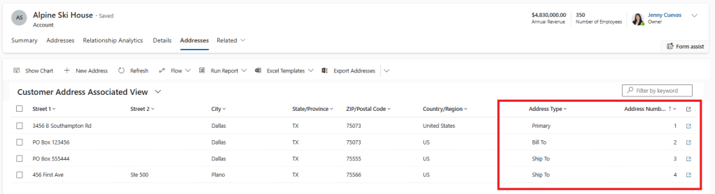 Did you know that D365 Sales comes with out-of-the-box customer address management functionality?