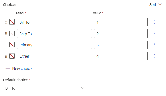 I am able to configure the Address Type choices and defaults. In my example, here is what I configured: