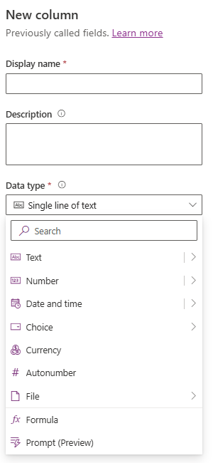 - If you try to add a new column to the Address table, you’ll notice that adding a Lookup field is not an option.
